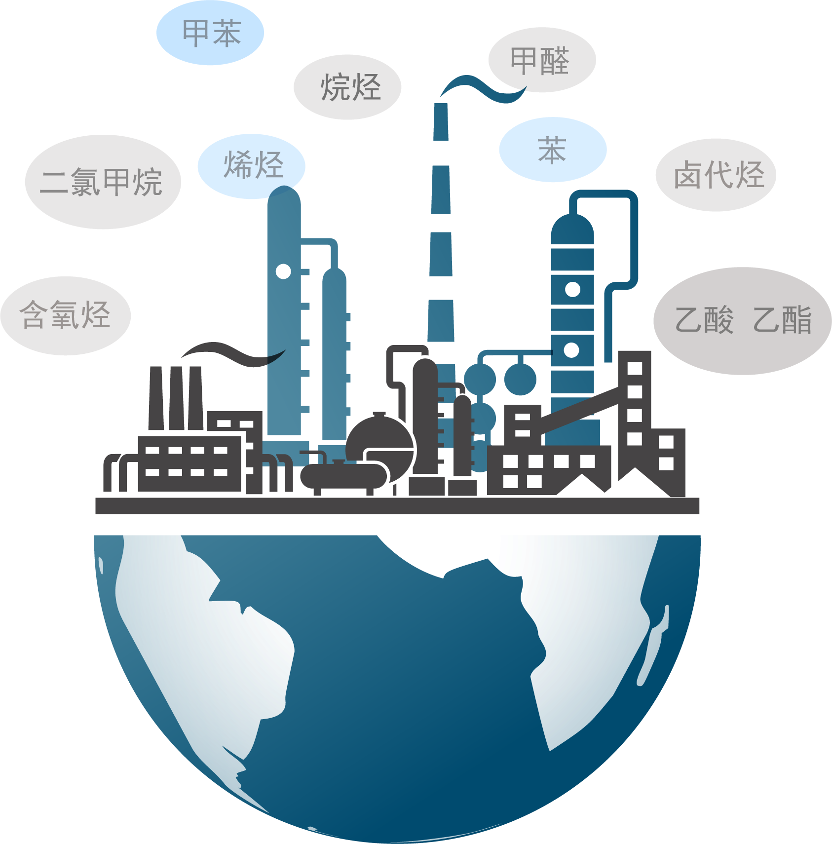 揮發性有機化合物(VOCS)是一類化合物的總稱,通常是指在常溫常壓下,具有高蒸氣壓、易揮發的有機化學物質,主要包括脂肪族和芳香族的各種烷烴、烯烴、 含氧烴和鹵代烴等,如苯、甲苯、二氯甲烷、甲醛和乙酸乙酯等。