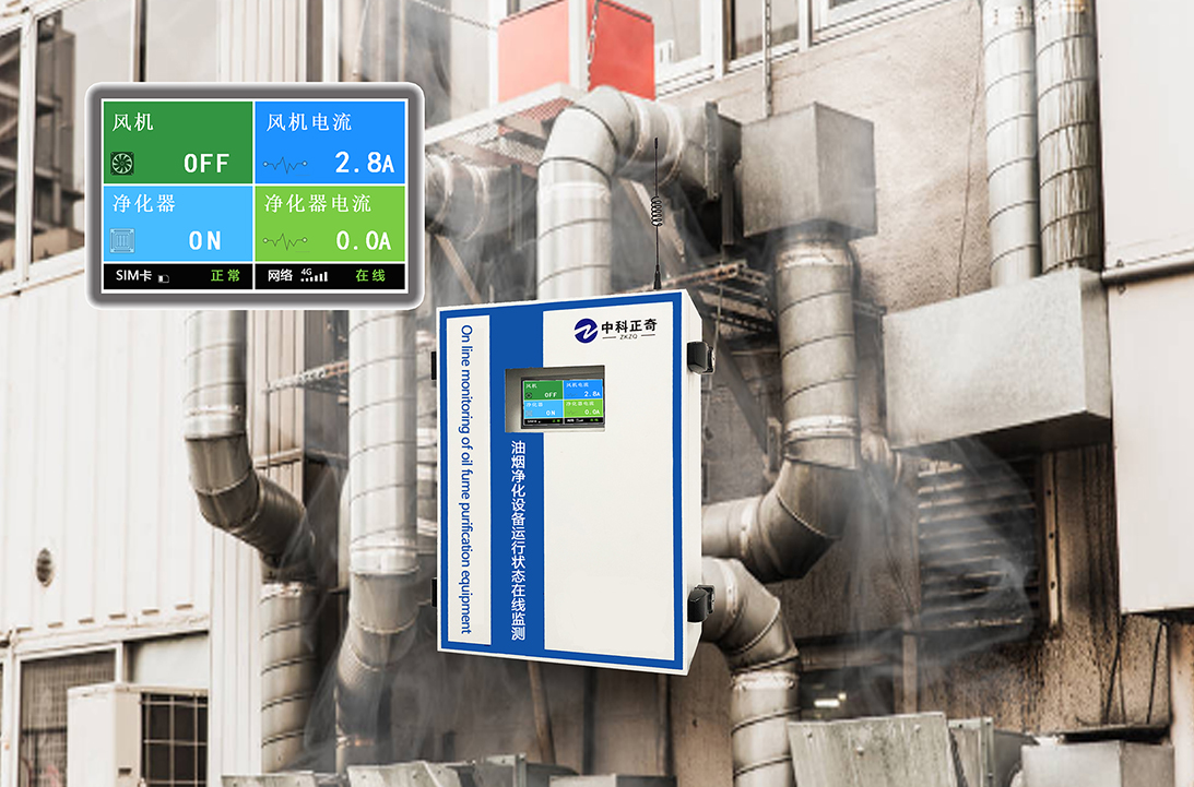 ZK-YZT油煙凈化設備運行狀態在線監測設備,由凈化器電源檢測裝置和油煙凈化設備運行狀態在線監測設備主機構成,采