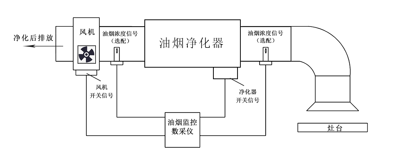 由于餐飲業單位所安裝的油煙凈化器配置各不相同,所以我們在油煙凈化設備運行狀態在線監測設備主機增設了高壓電源