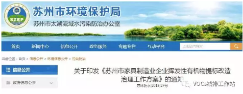 4)2018年,蘇州市環保局印發《蘇州市家具制造業揮發性有機物提標改造治理工作方案》,方案要求,對于不能全面使用低(無)VOCs涂料的企業,要加強VOCs廢氣收集和處理效率,有機廢氣收集效率不低于80%。同時,對VOCs廢氣末端處理工藝進行提升改造,建議不使用等離子、單純活性炭吸附、光催化氧化等單級治理技術,鼓勵采用預處理后吸附脫附、催化燃燒、蓄熱燃燒等高效處理技術,并確保VOCs去除率達到相關文件要求。