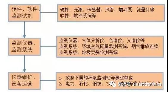 與此同時,環境監測百億規模市場將加速釋放。由于細分板塊眾多,環境監測涉及到環保行業各個子領域。根據檢測行業的不同,環境監測包括水質監測、大氣監測、土壤監測、噪聲監測、輻射監測等,各個領域市場有望相繼爆發。