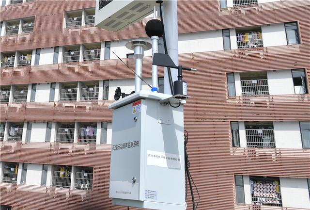 6月6日,記者來到肖家河街道高新實驗中學考點看到,考點的各項準備工作已經就緒,工作人員正對考場設置和設備設施進行確認。在學校5層樓高的教學樓頂,新安裝了一面連接著各種傳感器的大屏,在大屏上,實時刷新著當前的PM2.5、PM10、噪聲、溫度等環境數據。