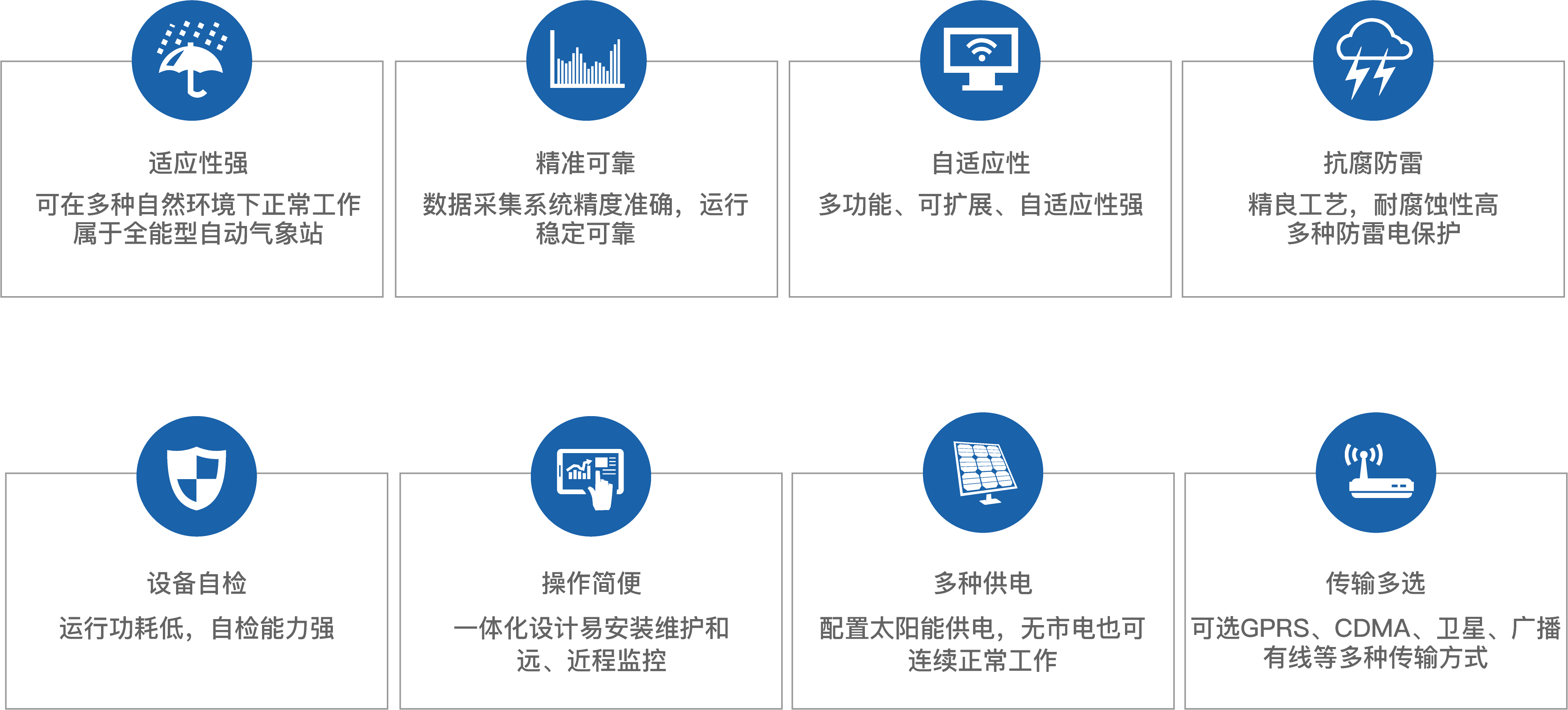ZK-ZD6A六要素自動氣象站,小型氣象站一種固定式的地面自動觀測設備。可以提高主城區的氣象探測時空密度,進一步提升城市防汛和氣象災害預報預警服務能力。實時觀測的氣象數據可以傳回服務中心站,觀測項目主要包括風向、風速、氣溫、濕度、大氣壓和降水量(雨量)等6類氣象要素。六要素自動氣象站均將選擇安裝在合適重要的地理位置,以便采集到更加豐富有效的氣象監測數據,為城市精細化氣象預報和預警服務提供重要參考依據。