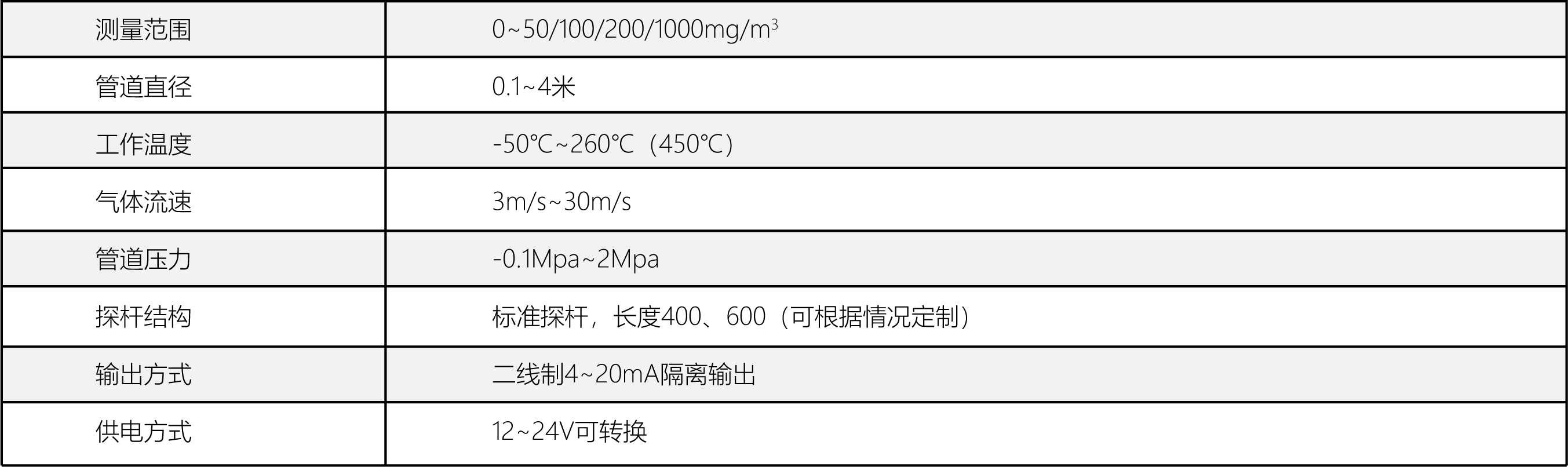 對(duì)粉塵的探測(cè)靈敏度高,線性度好,粉塵沾染探頭后不影響測(cè)量靈敏度,免維護(hù)免清理。