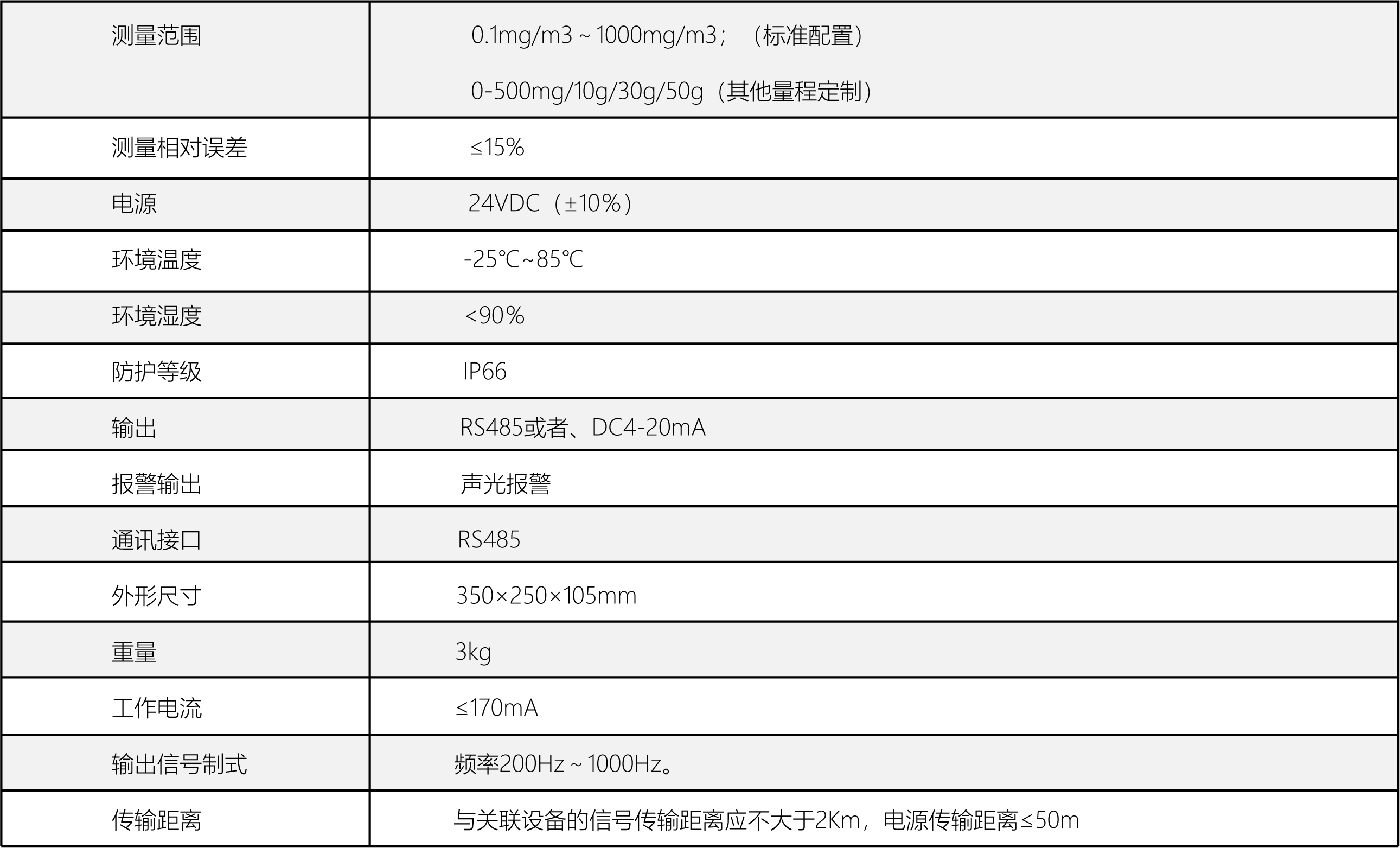 ZK-500一體式在線粉塵濃度報警器,粉塵濃度檢測儀,可以在量程范圍內設置任意報警值,當空間內粉塵煙塵濃度超過報警值后,儀器自動觸發聲光報警器。