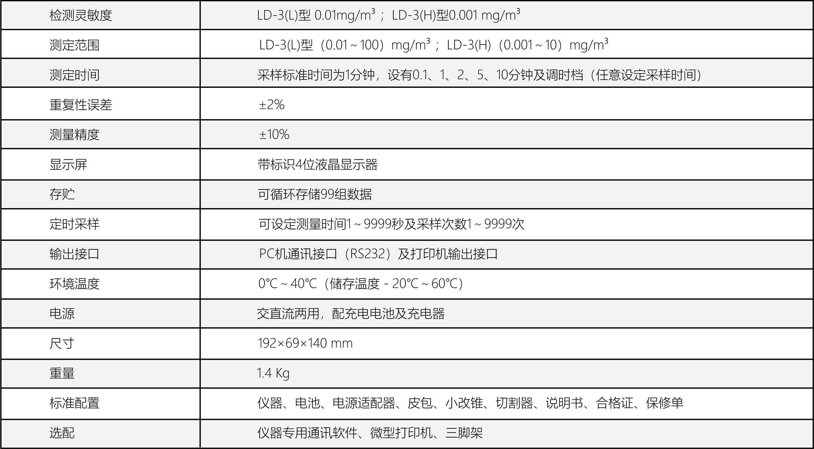 符合勞動(dòng)部行業(yè)標(biāo)準(zhǔn)LD98-1996《空氣中粉塵濃度的光散射式測(cè)定法》