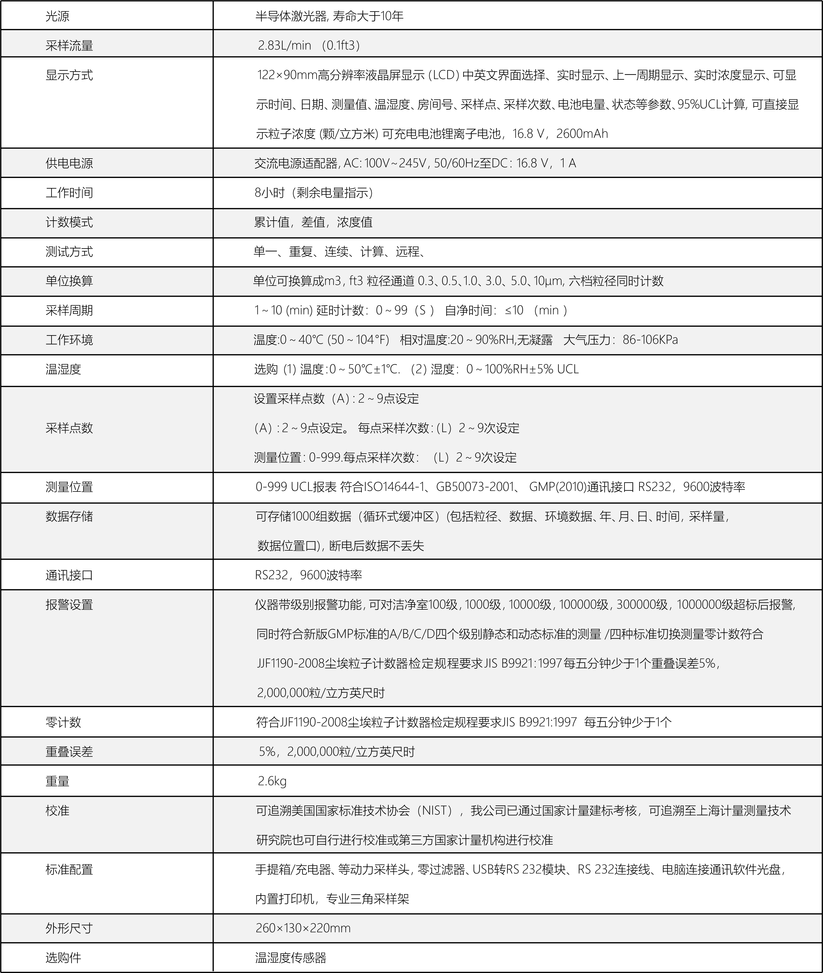 ZK-CLJ-3016L不銹鋼斜面交直流兩用激光塵埃粒子計數器是根據新版GMP2010版)的要求研制。該產品整體材質采用316L不銹鋼制作的外殼。激光傳感器采用全半導體激光器及半導體光敏二極管接收器,確保光源的穩定性和信號接收器的準確度。大大減少了散射腔內的雜散射光,提高了傳感器的信噪比。采用LCD大屏幕顯示及PVC溥膜開關控制,顯示數據清晰,操作方便。該儀器可根據客戶選擇的標準,自動判斷出各種凈化等級。